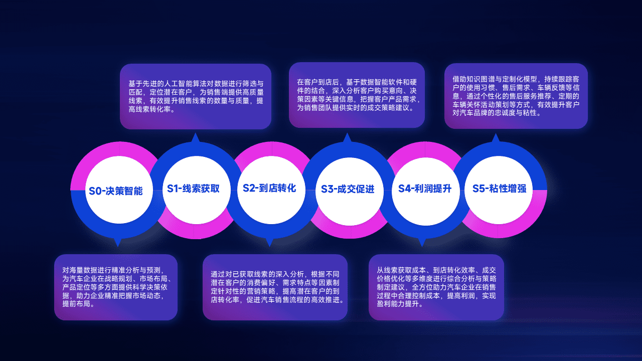 通过拓宽潜在客户来源、、、、优化线索分配并提高到店转化率,,以增强销售效率。。同时,,利用线索数据不断优化分析模型,,有效提升转化率,,,扩大营销影响力。。。